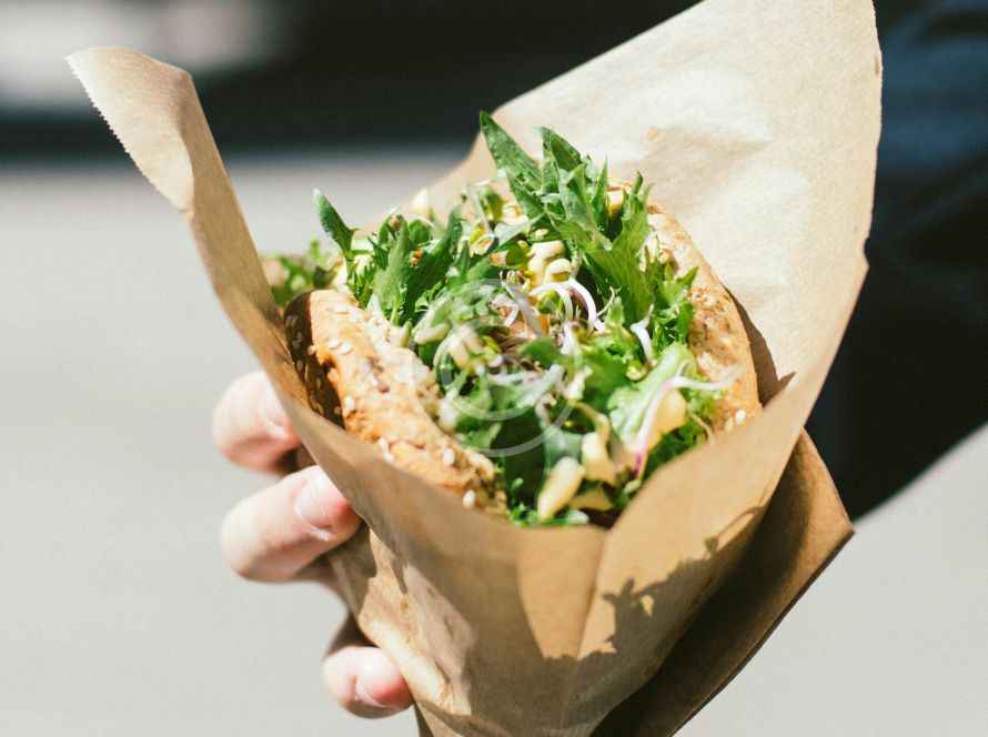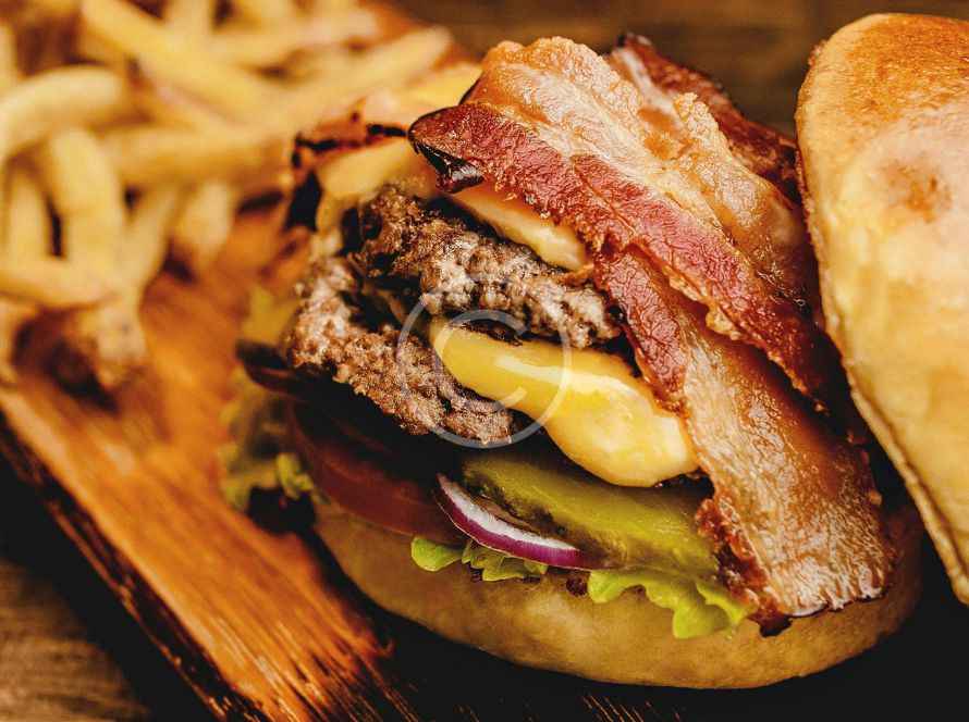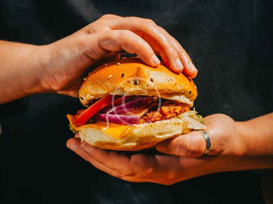 Soße, Salat, Rindfleischpatty, Brie(käse), Preiselbeeren